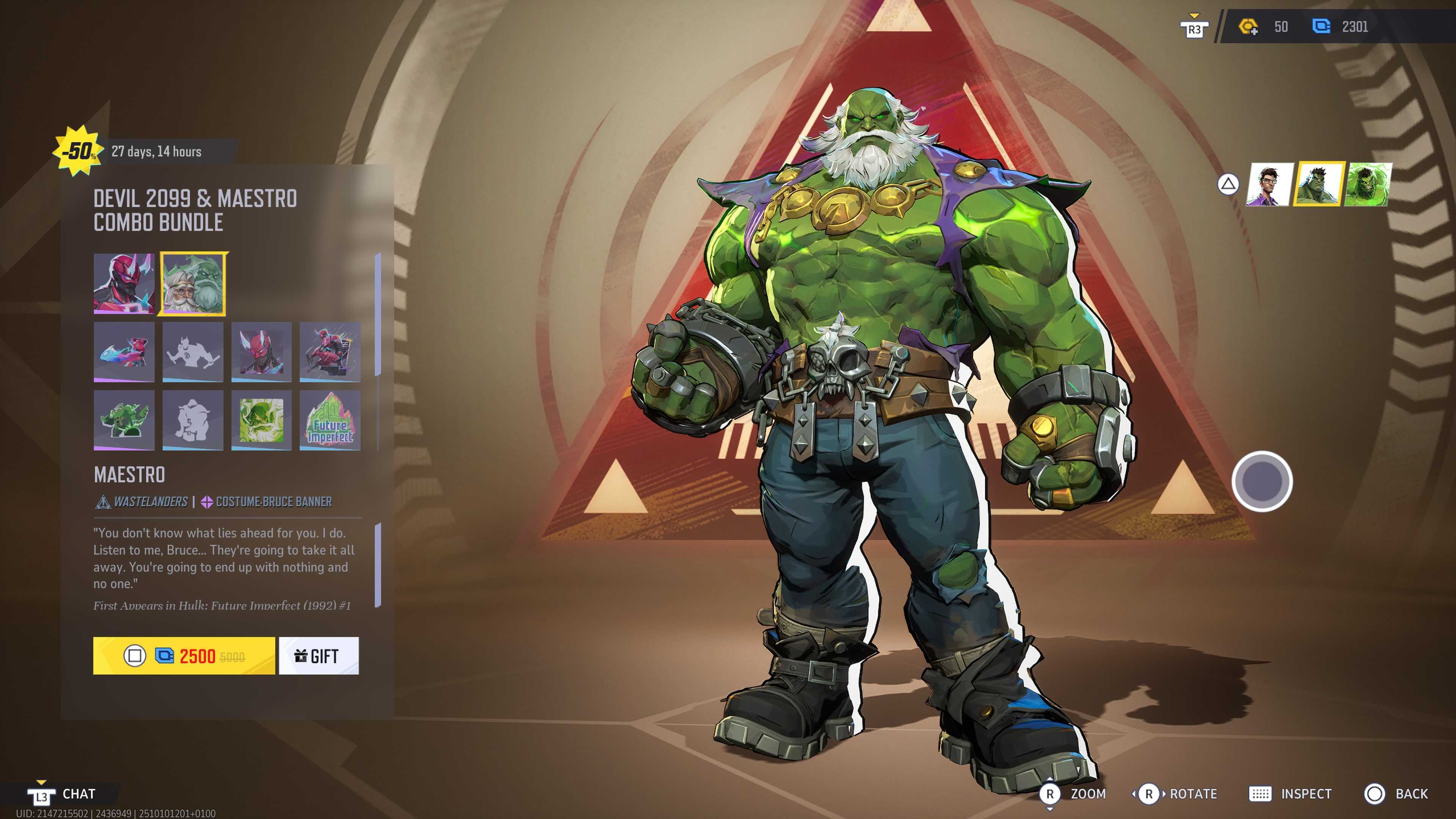 The Maestro bundle for Hulk features an awesome Hulk costume, and can be purchased from the store alongside the 2099 Daredevil bundle. There's emotes, stickers and more included as well.