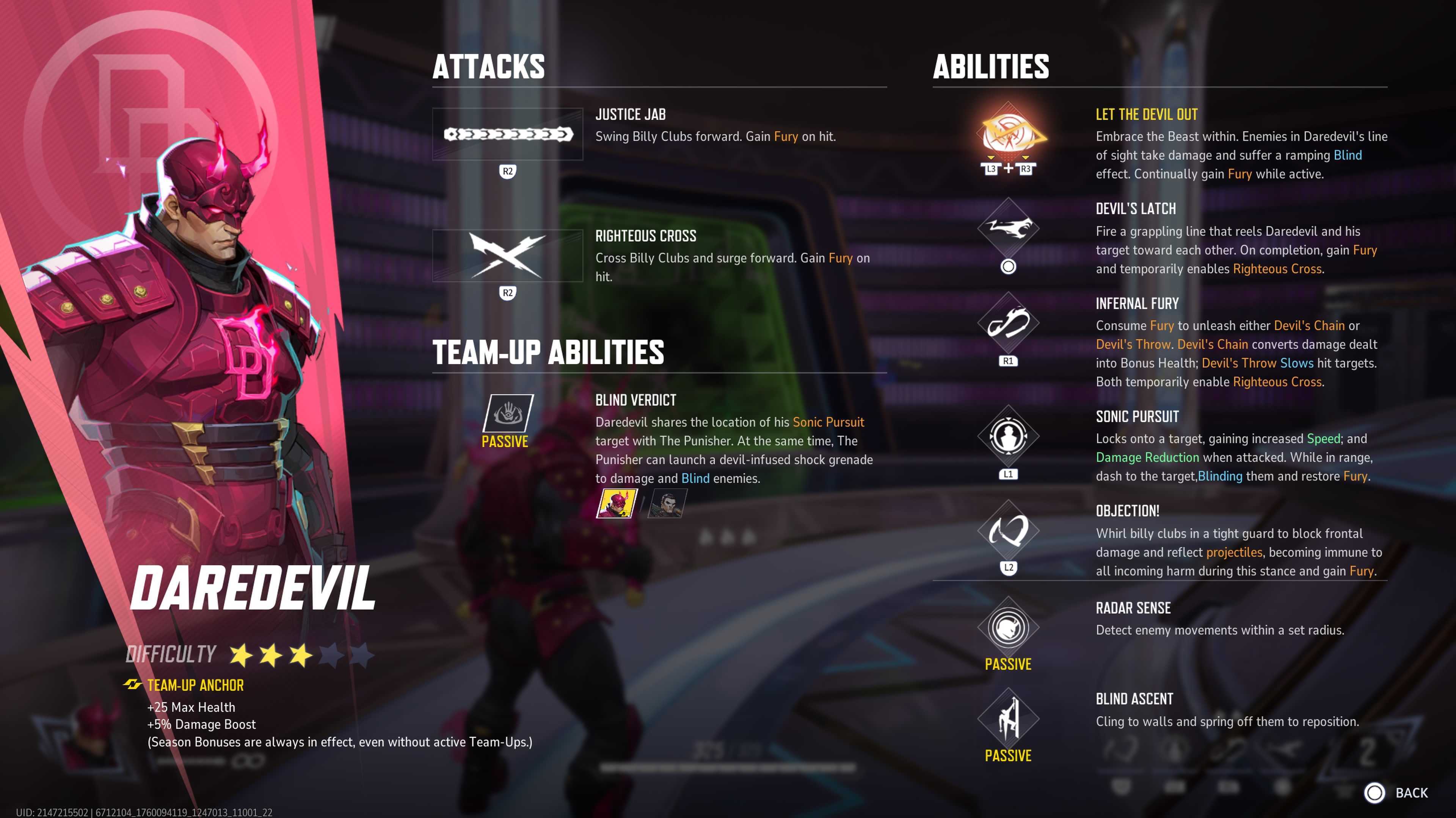 The new Bestial unit Team Ip has Daredevil as an anchor to The Punisher, unlocking a maximum health increase of 25 and a 5% boost in damage. The Punisher unlocks a new Justice Sense ability as part of the Team Up.