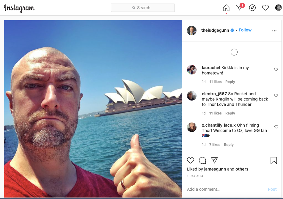 Gunn – brother of Guardians director, James Gunn – posted a photo of himself in Sydney to Instagram.