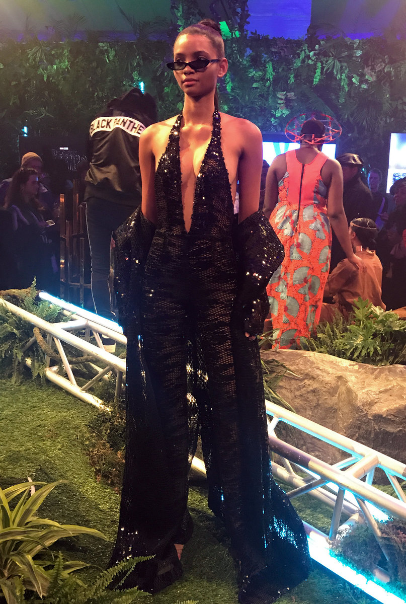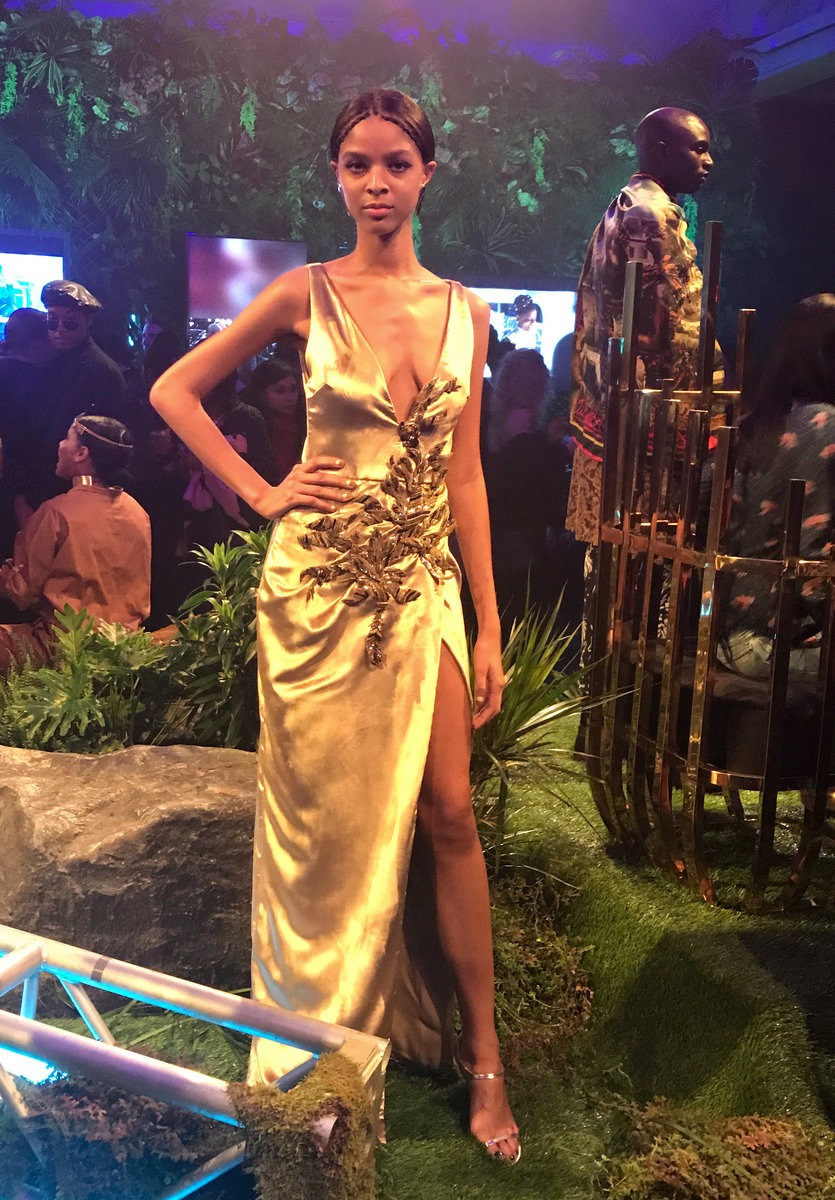 Designers presented their one-of-a-kind ensembles meant to pay homage to the film, which features a predominantly black cast including Michael B. Jordan, Lupita Nyong’o and Angela Bassett.