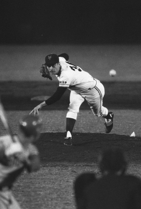 Born in Aichi Prefecture in 1933, Kaneda played for Kyoei Commercial High School (now Kyoei High School) and joined the Swallows in 1950. The southpaw's arsenal included a blistering fastball and a big, dipping curve.