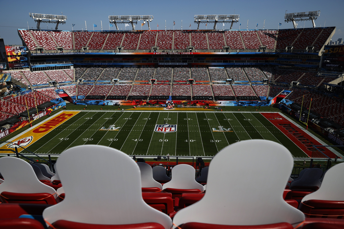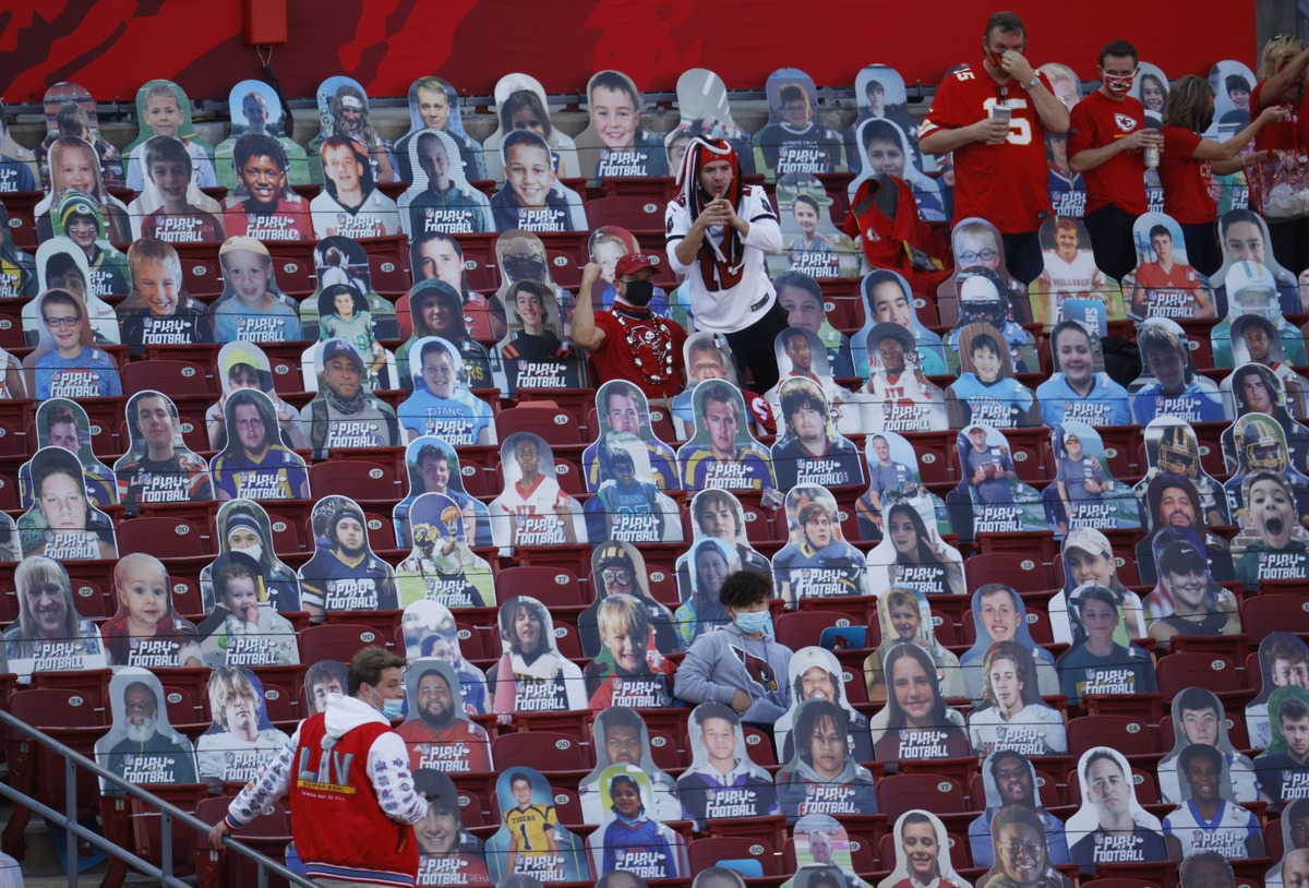 The 65,618-capacity Raymond James Stadium, which is allowing 25,000 ticketed fans in the stands and suites for America's biggest annual sporting event, had the appearance of a packed crowd, as cardboard cutouts were scattered between the in-person fans.