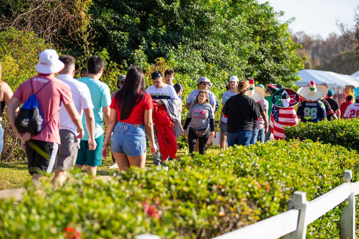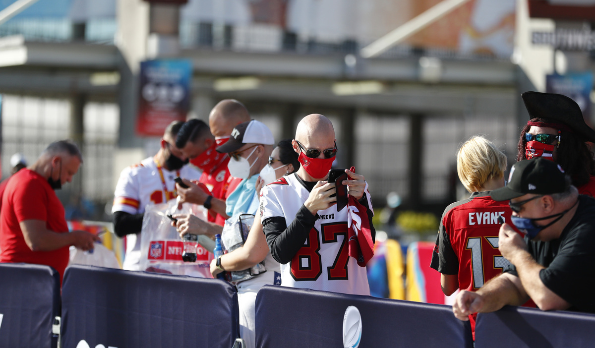 Mask-clad fans streamed into the Tampa Bay Buccaneers' stadium on Super Bowl Sunday for the NFL's championship game, as the limited crowd of attendees largely observed COVID-19 health and safety restrictions.
