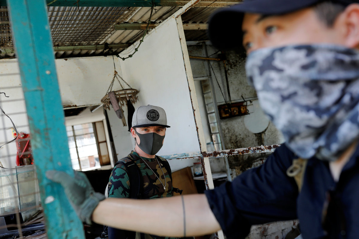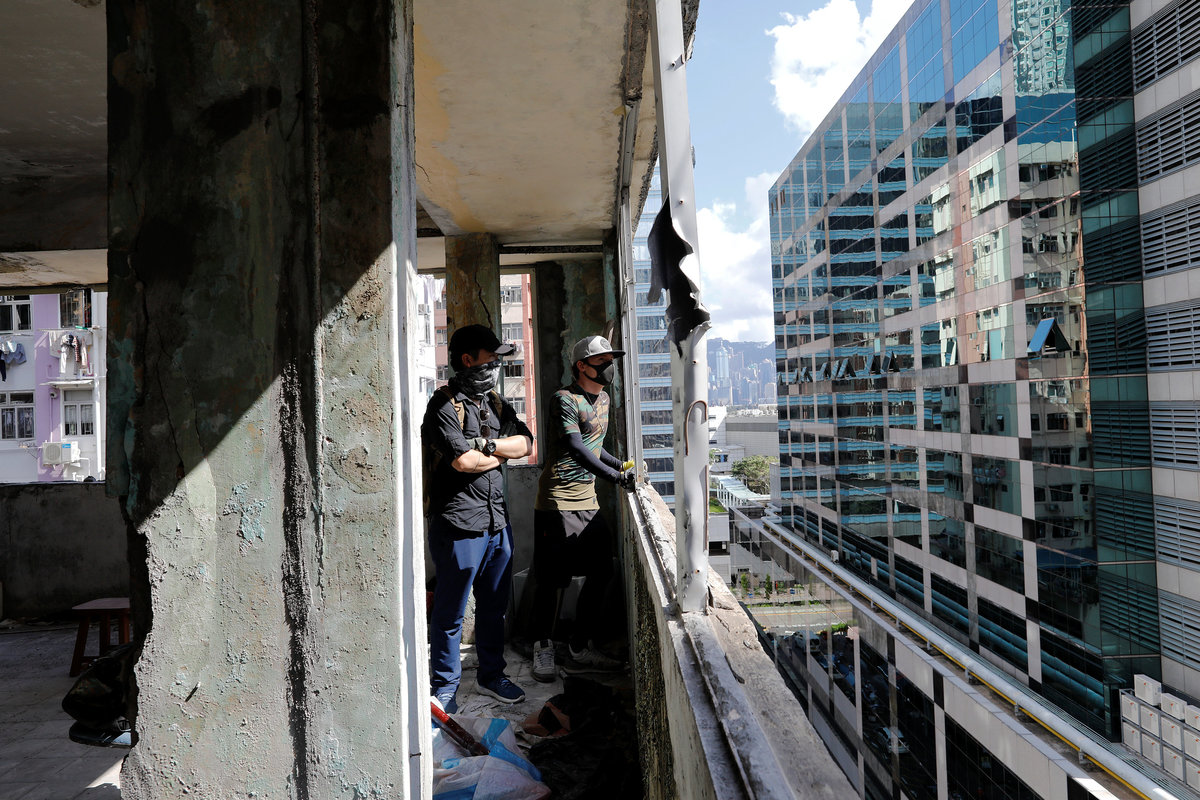 HONG KONG (Reuters) - Atop Hong Kong's tallest peak blanketed in clouds, three masked urban explorers step back in time as they slip through a wire mesh fence and march towards an abandoned army barracks from the British colonial era.