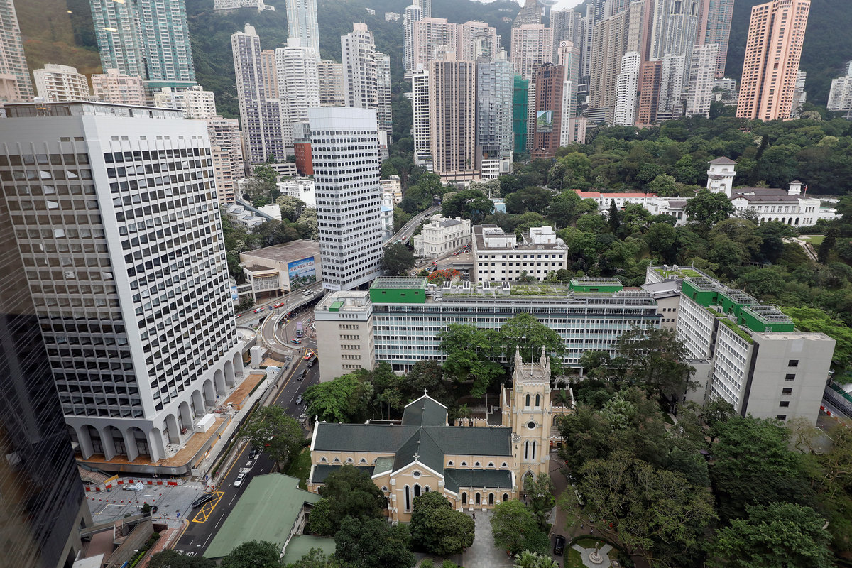 Colonial era buildings (front to back), St John's Cathedral, former Central Government Offices and Government House are seen in Hong Kong, China, June 3, 2017. REUTERS/Tyrone Siu