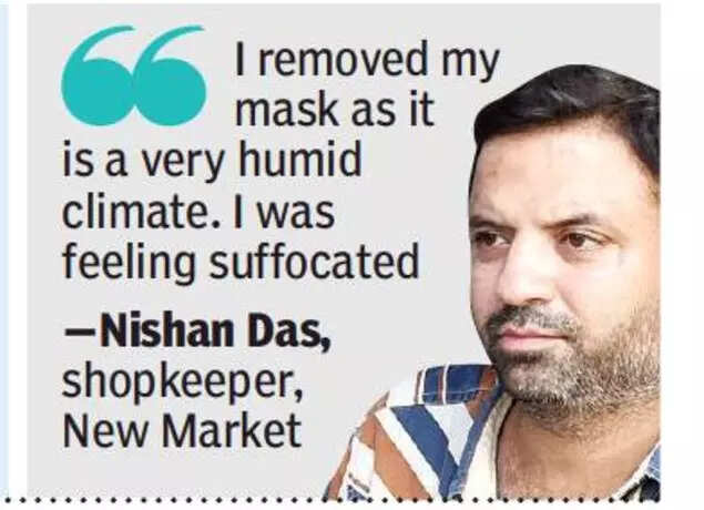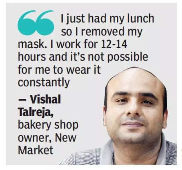 TOI spoke to a number of people including shopkeepers, elderly men, women, students and youngsters and even families with children visiting the New Market and Boat club and all were aware about the importance of masks and were carrying it with them. But they wore the masks only after the TOI raised an objection. A mobile shopkeeper Manish Gupta told TOI, “People only follow rules and protocols until there is a fear of any disease.