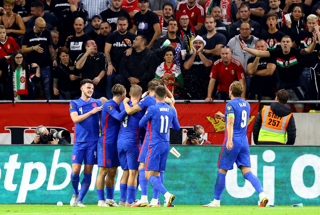 The Three Lions eased to a comfortable 4-0 victory in their World Cup qualification clash in Budapest – although the result was marred by racist abuse from the stands.