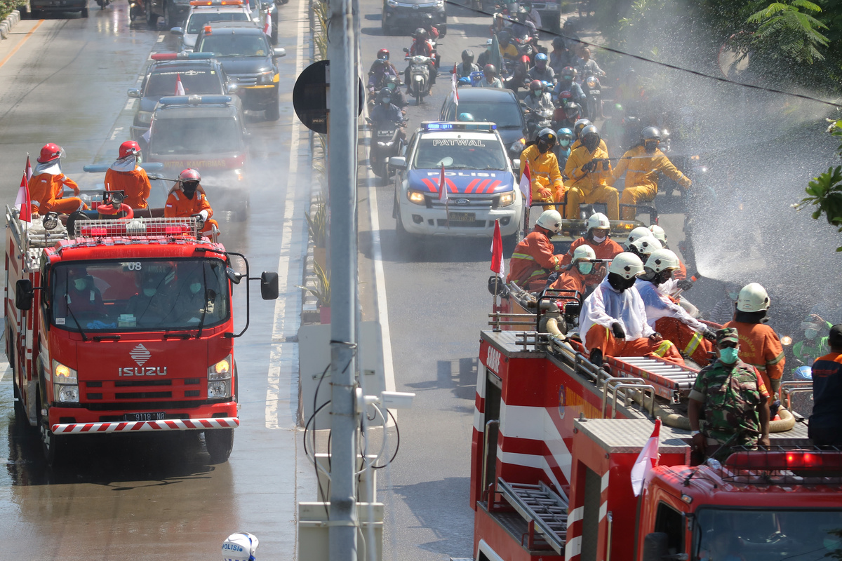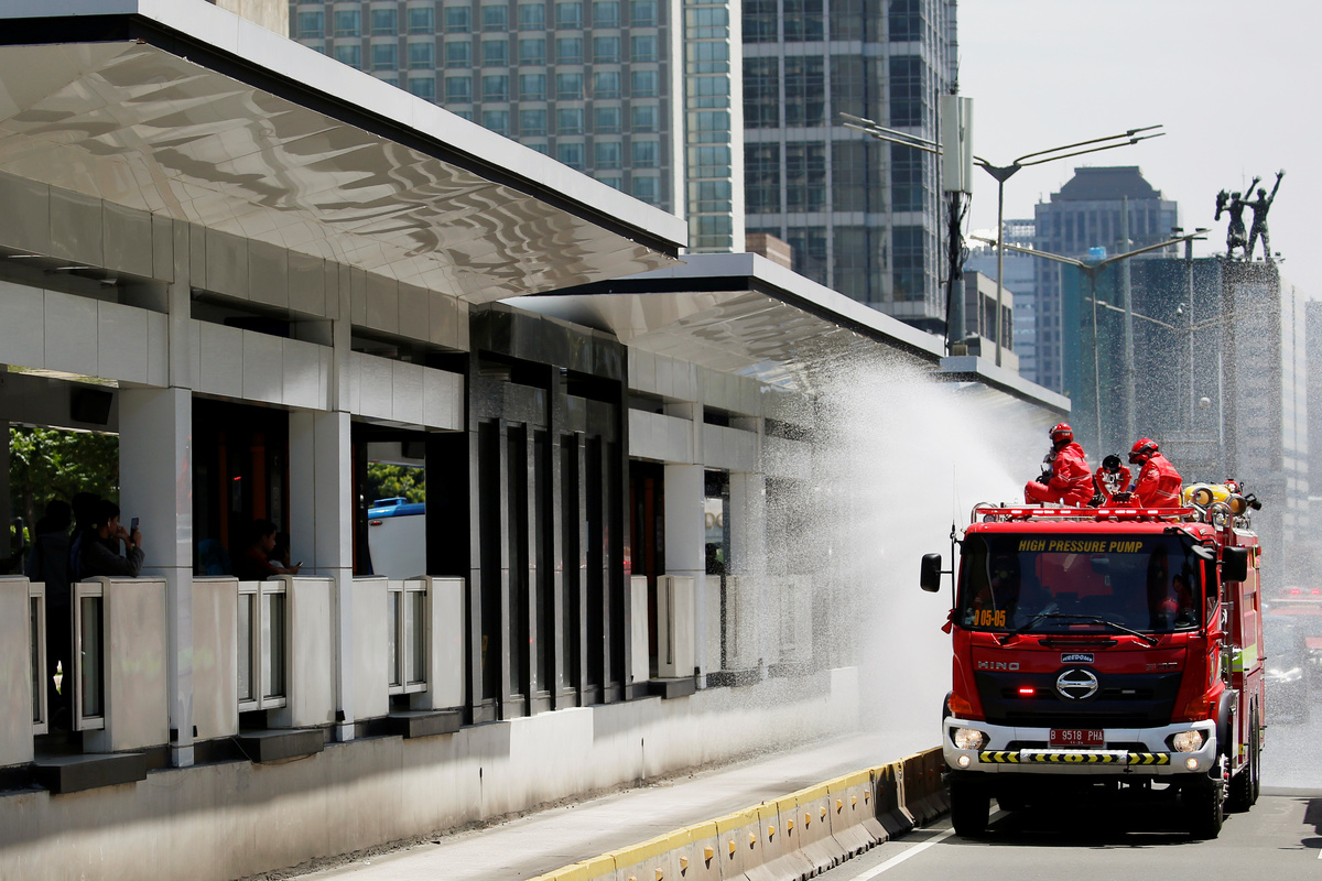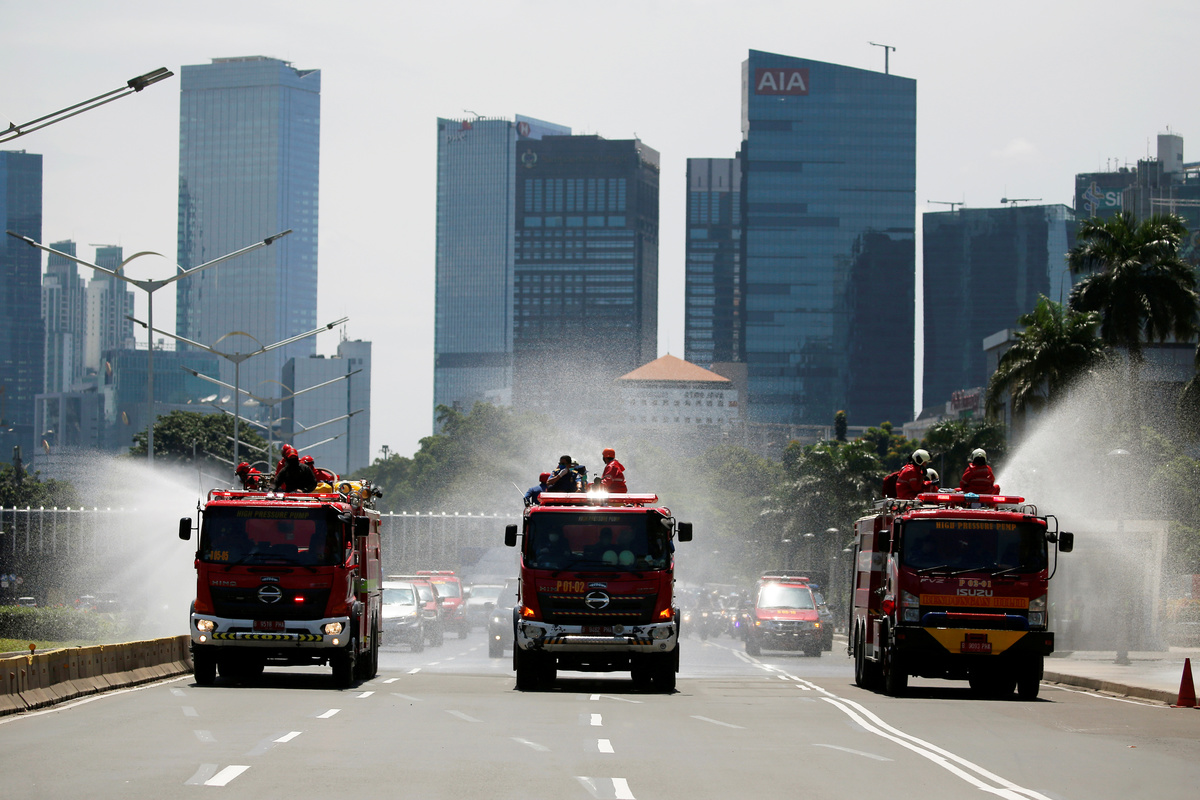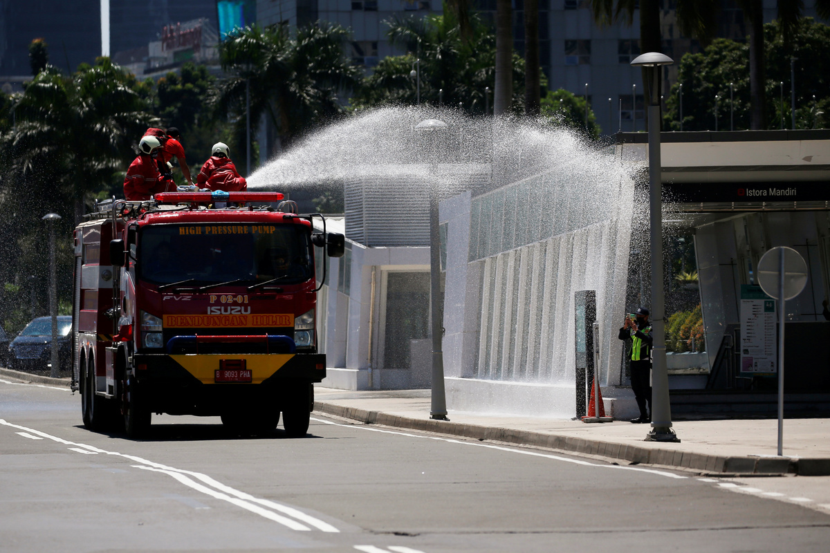 Back in Indonesia, telephone box-shaped disinfection chambers are being set up across the capital Jakarta, offering passers-by a quick blast to rid their clothes and skin of potential germs.