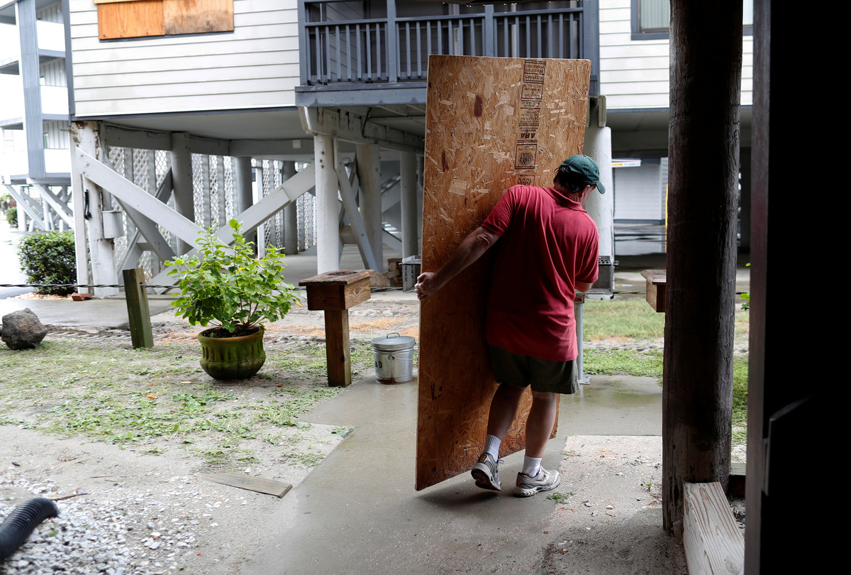 Residents prepared by boarding up their homes and stocking up on food, water and other essentials, stripping grocery store shelves of merchandise. Many gasoline stations were running low on fuel.