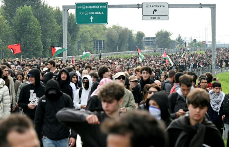 Over 80,000 people demonstrated in Milan, police told AFP, with a sea of people clapping and waving the Palestinian flag as they made their way through the streets, carrying a massive banner reading: "Free Palestine, Stop the War Machine."
