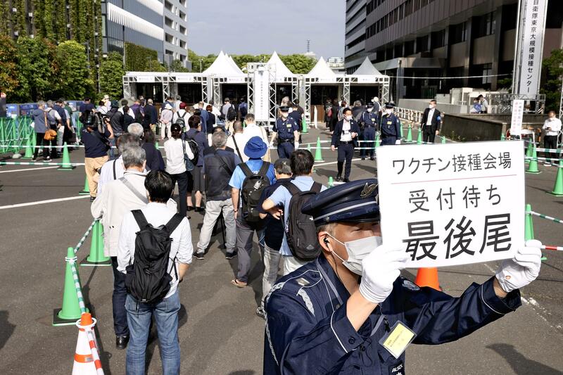 At the Tokyo venue, people aged 65 or older who live in the neighboring prefectures of Chiba, Kanagawa and Saitama became eligible to receive shots from Monday alongside residents of the capital. On the same day, the Osaka venue expanded its eligibility criteria to include elderly from anywhere in Osaka Prefecture. Both centers are run by the Self-Defense Forces.
