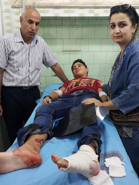 Is this sentimental? I don’t think so. We weep over the dead children of eastern Aleppo, under siege by the Syrian regime. But Khanom is equally worthy of the world’s sympathy. Neither she, nor her brothers, nor the three children at the school, chose which side of Aleppo they would live in. But of course, as always, there is astonishment as well as shock when you talk to the children who survived. Although in great pain and with blood on his feet, 14-year old Ahmed Skeifeh, told me that he was still in the classroom beside the roof when the shell exploded. I had seen English textbooks and a half-eaten bun on the floor and on the broken desks and – incredibly, amidst his pain – Ahmed chose to speak in perfect English. “I fell onto the floor and my friends were all with me and I saw my friends fall down and I saw my friends die with my own eyes,” he said. “I can’t remember anything more. I ran out of the room.” The boy was propped up on his hospital bed, one of five boys seriously injured, his teacher standing beside him, his arm around the boy’s head.