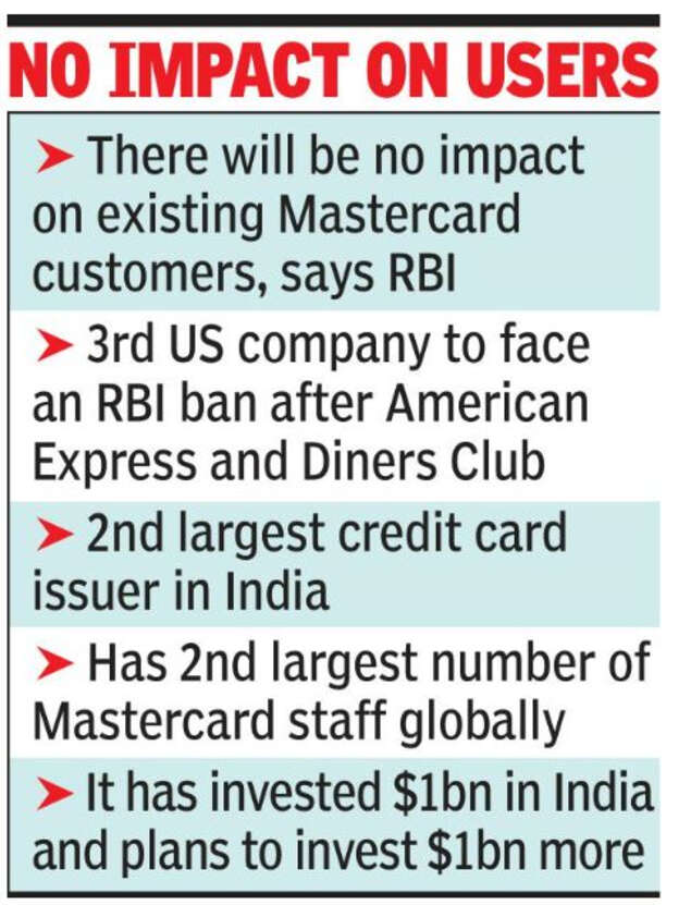 MUMBAI: Flexing its muscles on the issue of data localisation, the Reserve Bank of India on Wednesday barred Mastercard from onboarding any new domestic customer from July 22.