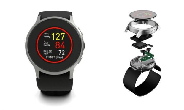 The Omron HeartGuide smartwatch is built around an oscillometric (inflating) blood pressure monitor. It contains tiny pumps and air bladders that conduct the same kind of blood-pressure test. The watch wirelessly uploads its readings to an app called HeartAdvisor, and that history can be shared with your doctor.