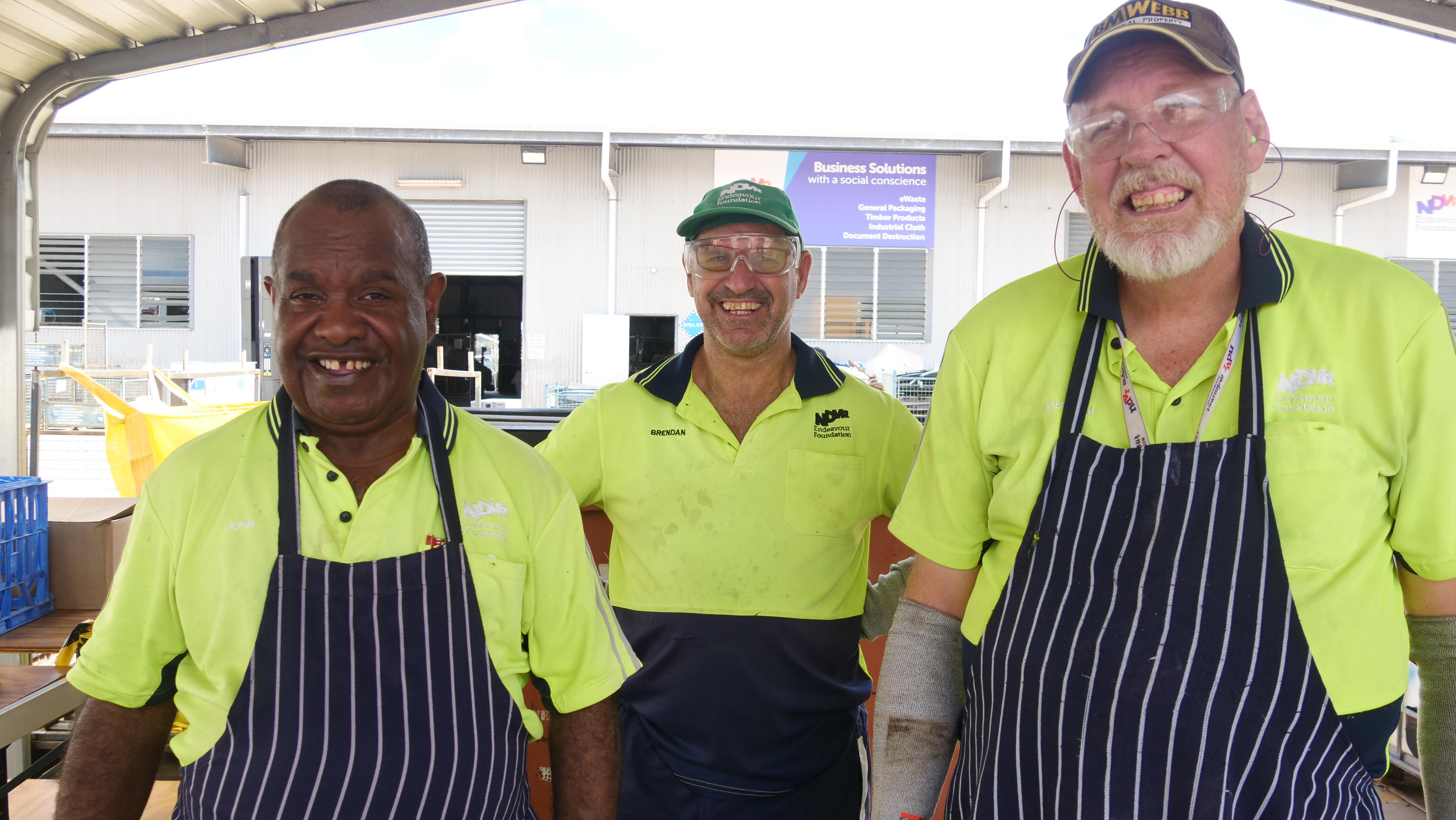 All three of the men work for the Endeavour Foundation charity, pulling apart electronic devices and televisions for scrap metal.