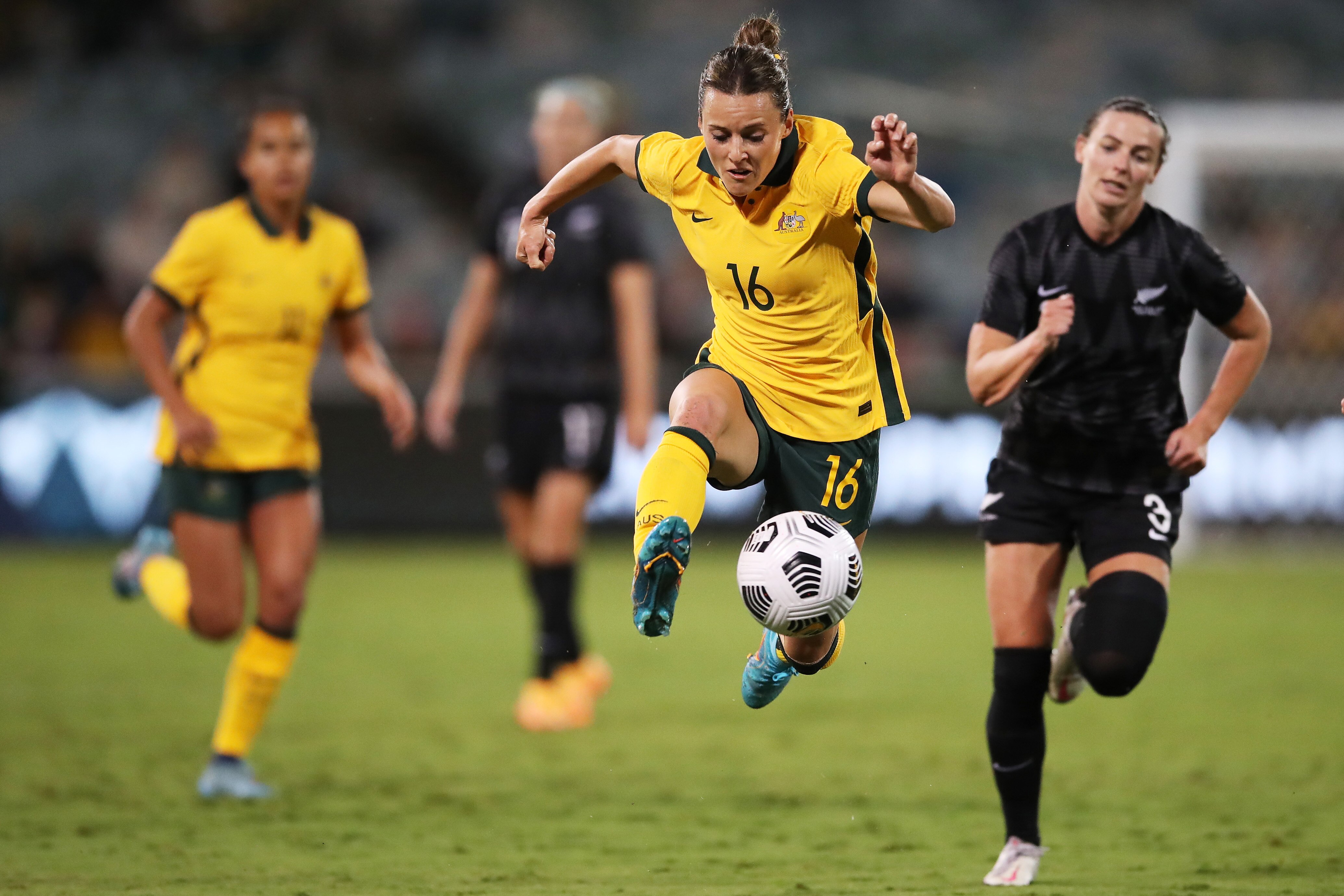 After the break, the Matildas continued where they left off, pressing New Zealand back and threatening the goal, Foord striking the crossbar with a curling effort.