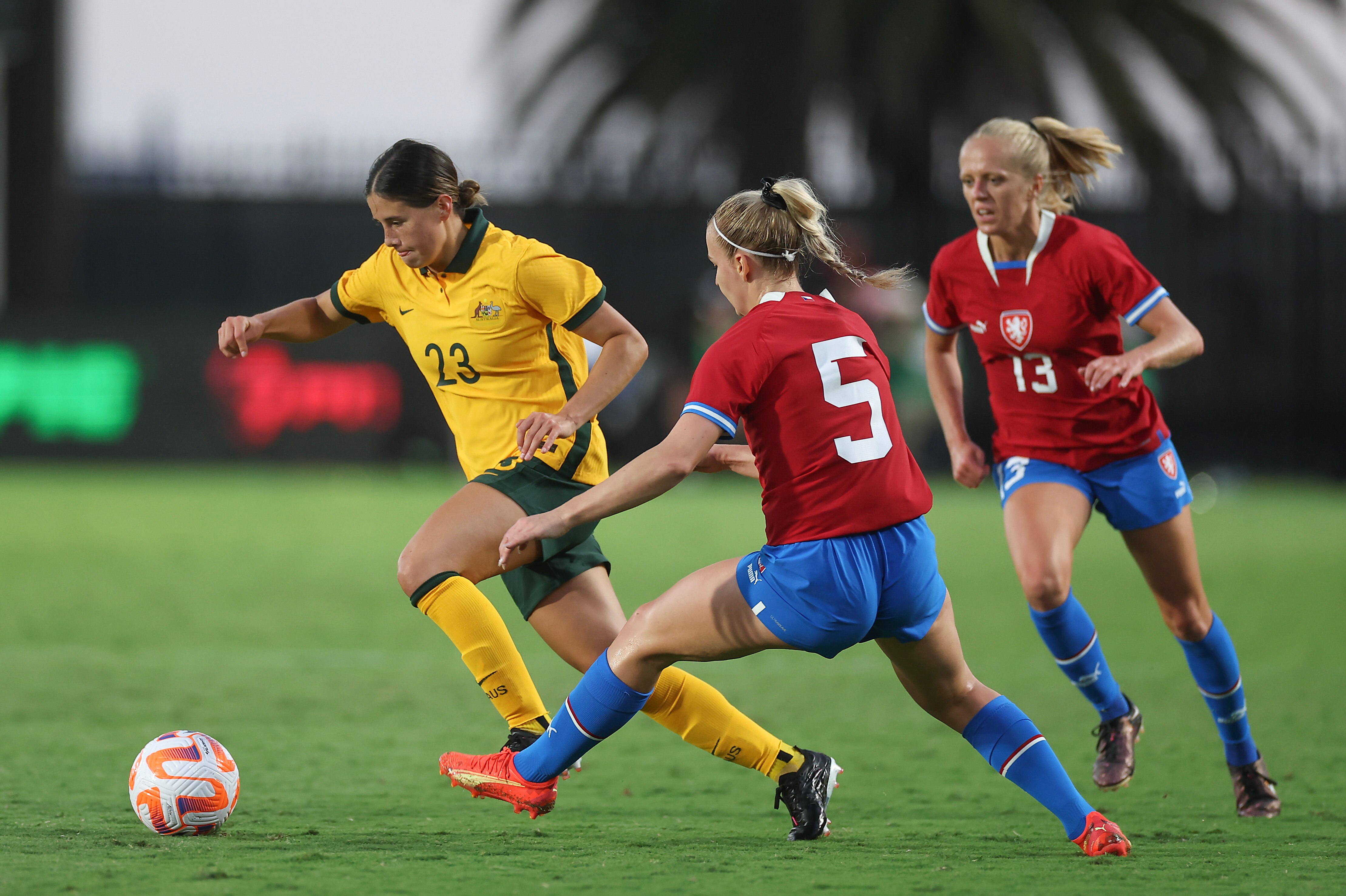 In fact, it was Czechia who created the more dangerous of the chances in the first half, with two one-on-ones forcing Matildas goalkeeper Mackenzie Arnold to come to the rescue. As the half-time whistle blew, Central Coast Stadium hummed restlessly, nervously.