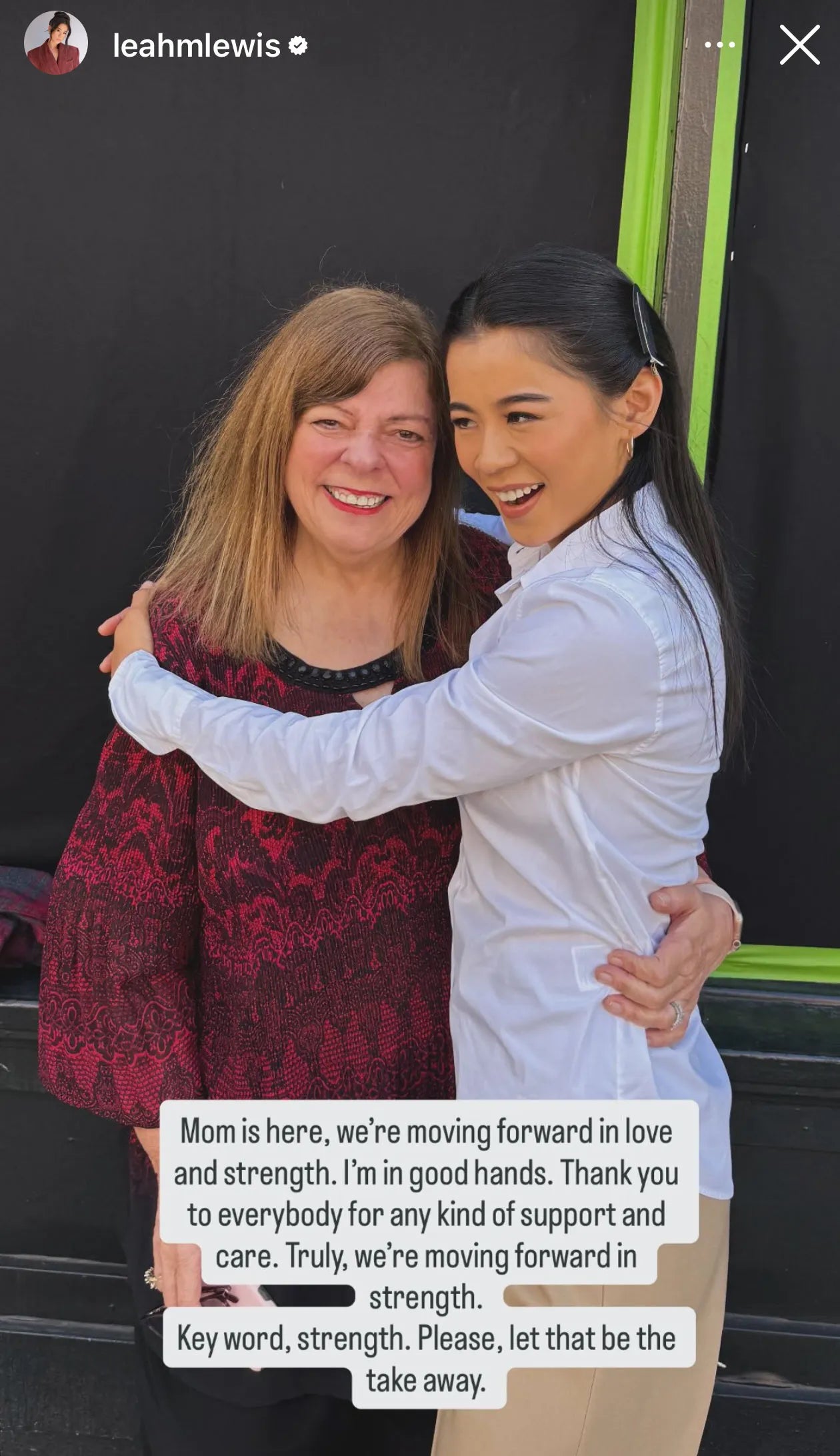 “Mom is here, we’re moving forward in love and strength. I’m in good hands,” Lewis, 28, wrote on her Instagram Story Thursday. “Thank you to everybody for any kind of support and care.