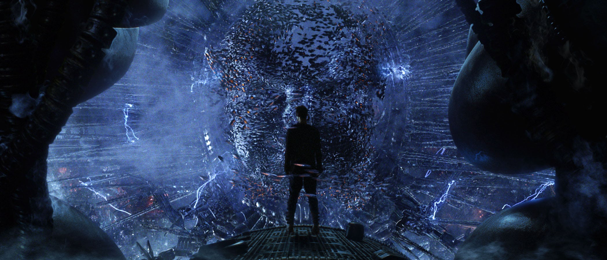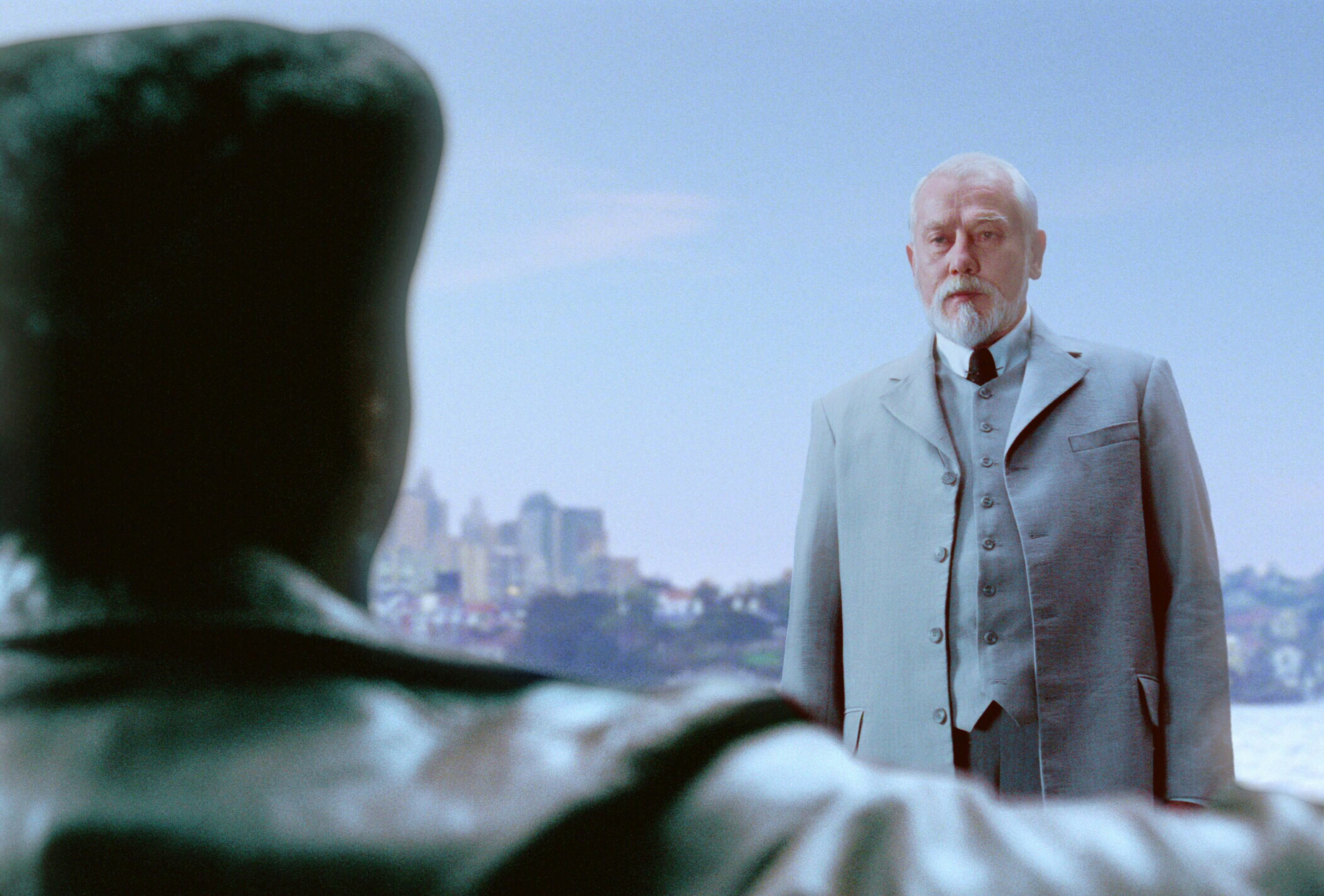 The main misstep in Reloaded that poisoned the trilogy was that it dumped all of the most necessary exposition about Neo, the Matrix, and the function of “The One” into a single scene. Neo meets the Architect (Helmut Bakaitis), who brings into Reloaded a restrained presence, inert five-dollar vocabulary, and sleep-inducing monotone delivery. The scene’s sleepily directed, with straightforward staging and many screens surrounding the Architect in what feels like a prioritization of metaphor over explanation.