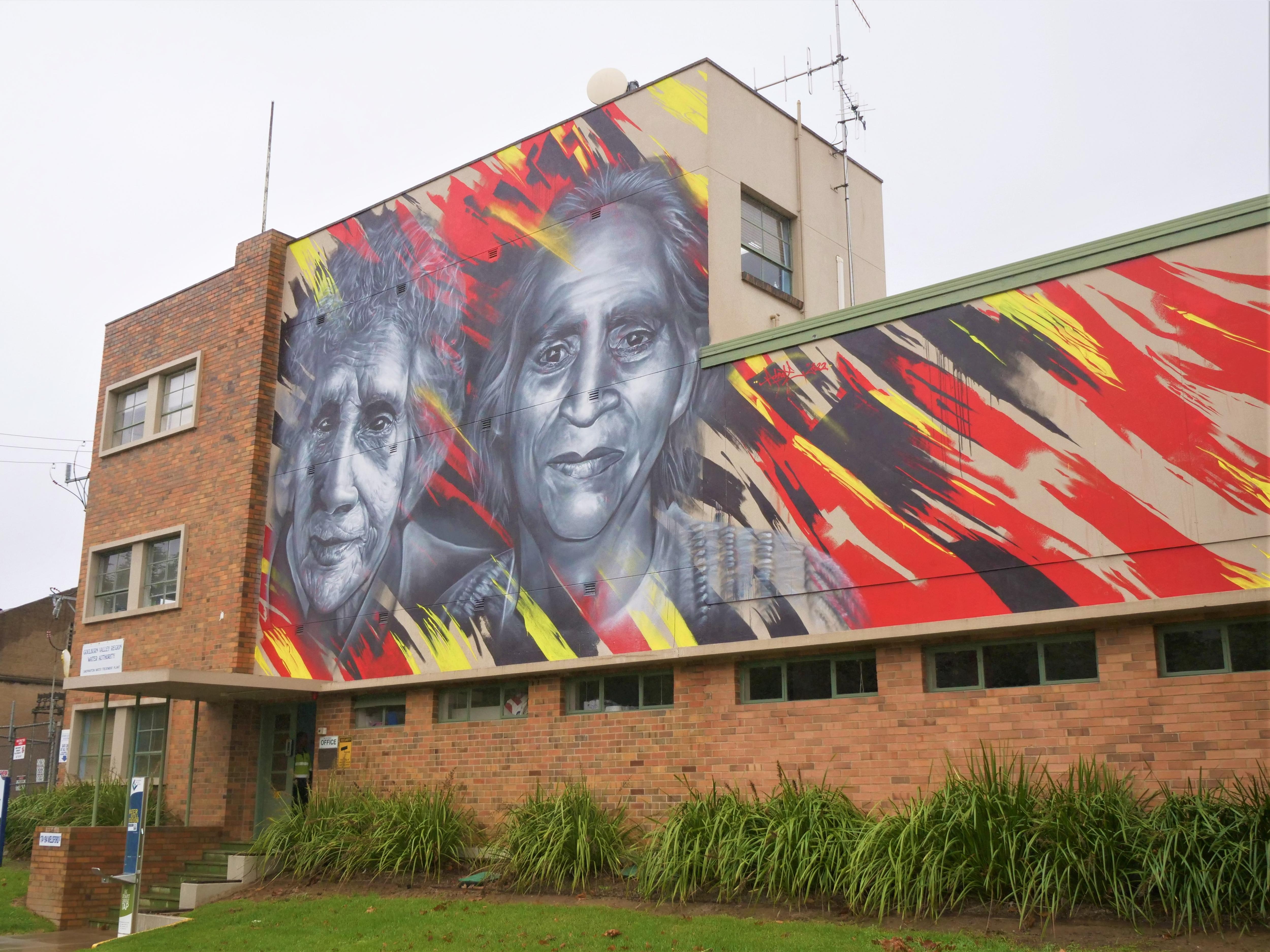 The work by mural artist Matt Adnate is his fourth as part of the Greater Shepparton City Council and Yorta Yorta Nation Aboriginal Corporation's Aboriginal Street Art Project.