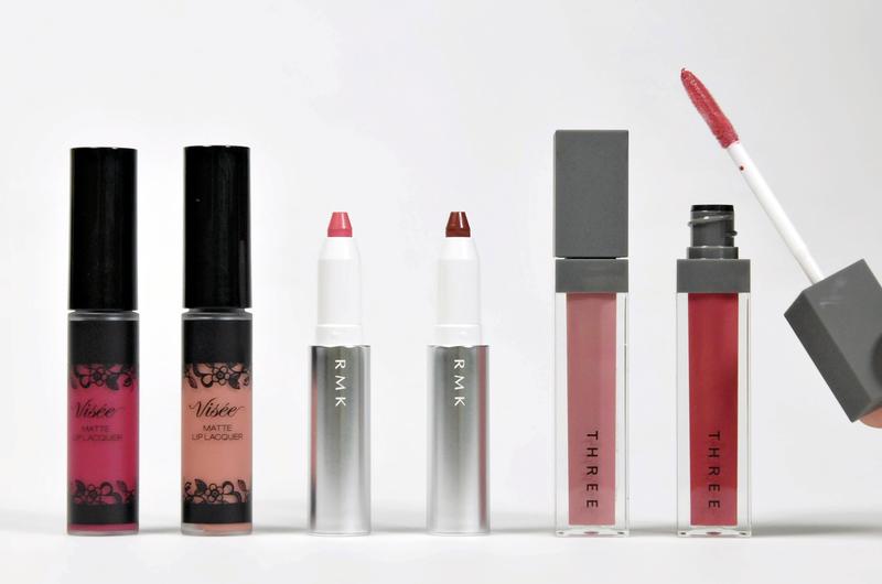There are also liquid matte lipsticks. THREE's Lyrical Lip Bloom line, with each lipstick priced at 3,500 yen excluding tax, was launched in January and makes use of the natural color of the wearer's lips to create a petal-like texture, according to the brand.