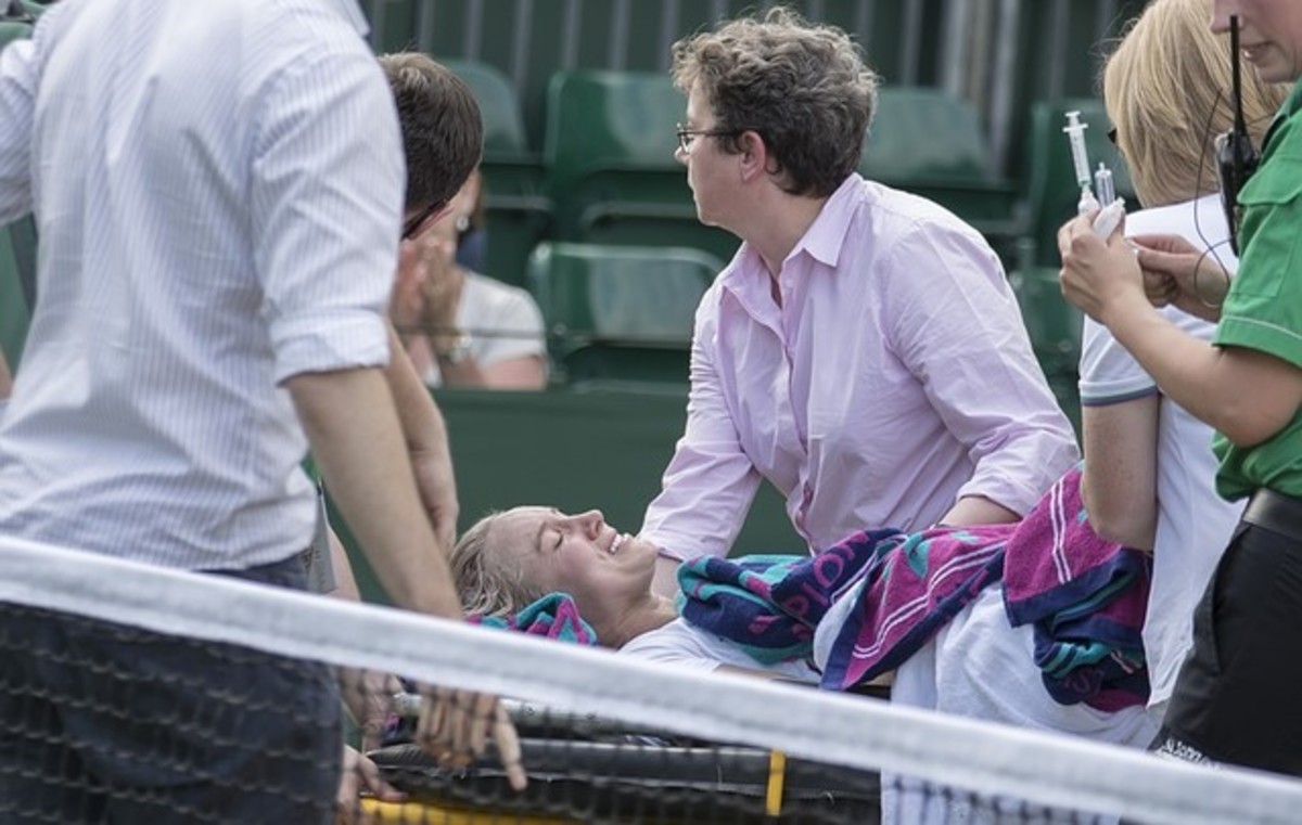 The 32-year-old was treated by doctors on the court for more than 20 minutes, during which time she was given oxygen and an injection, before she was taken to hospital.