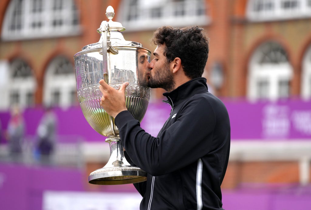 In doing so Berrettini, also 25, became the first debutant to triumph at Queen’s since Boris Becker in 1985 – who went on to win Wimbledon a couple of weeks later.