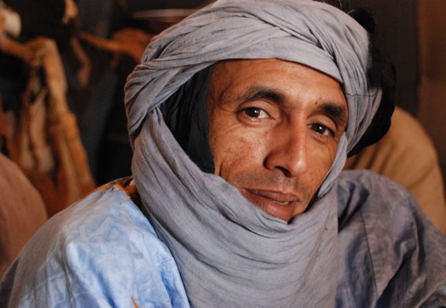 Many Chinguetti homes, with acacia-wood doors leading to courtyard interiors, now lie abandoned and half-buried in sand. “Lots of people have left the old towns now,” says Mohamedou. At its heart, the mosque’s dry-stone minaret turns gold in the setting sun as turbaned men squat outside, chanting their prayers. Back across a wide oued (dry river bed) flanked by dunes is the new town of dry-stone houses with low windows (against the heat), flat palm roofs and traditional triangle motifs cut into the walls.
