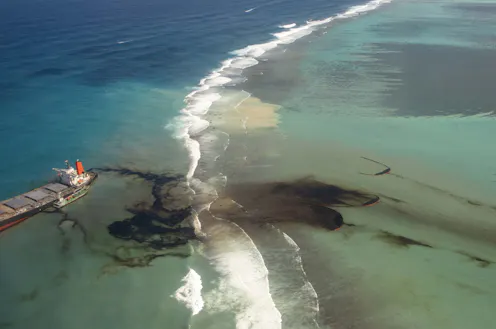 On the evening of Saturday July 25, the MV (Merchant Vessel) Wakashio grounded on coral reefs in the south-east of the Indian Ocean tropical island of Mauritius. The ship, a Japanese-owned but Panama-registered bulk carrier designed to transport unpackaged goods such as coal or grain, was empty of cargo but had an estimated 200 tons of diesel and 3,800 tons of heavy fuel oil onboard. The ship sat for over a week before cracks emerged in its hull.