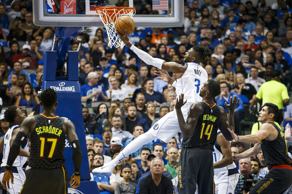 Smith made an electric debut, running a curl around the Atlanta defense on the Mavericks' first possession and taking a lob pass from Wesley Matthews for a two-handed dunk.