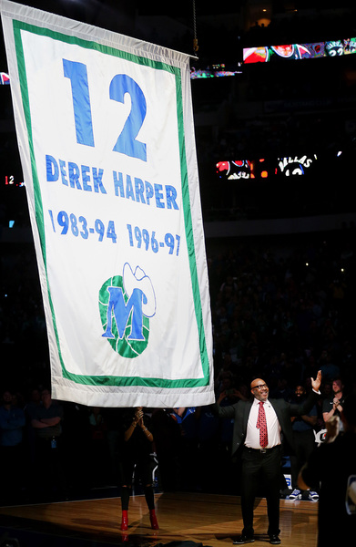 Point guard Derek Harper, who wore jersey No. 12 for 12 of his 17 seasons in the NBA, had his number retired to the rafters alongside teammates Rolando Blackman and Brad Davis.