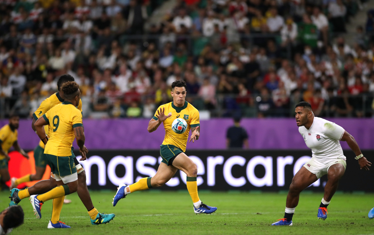 Australia went straight back on the attack but a David Pocock pop-pass went through the hands of Lealiifano and Henry Slade swooped onto the ball, the centre racing 40 metres before putting May into the left corner again with a neat grubber kick.