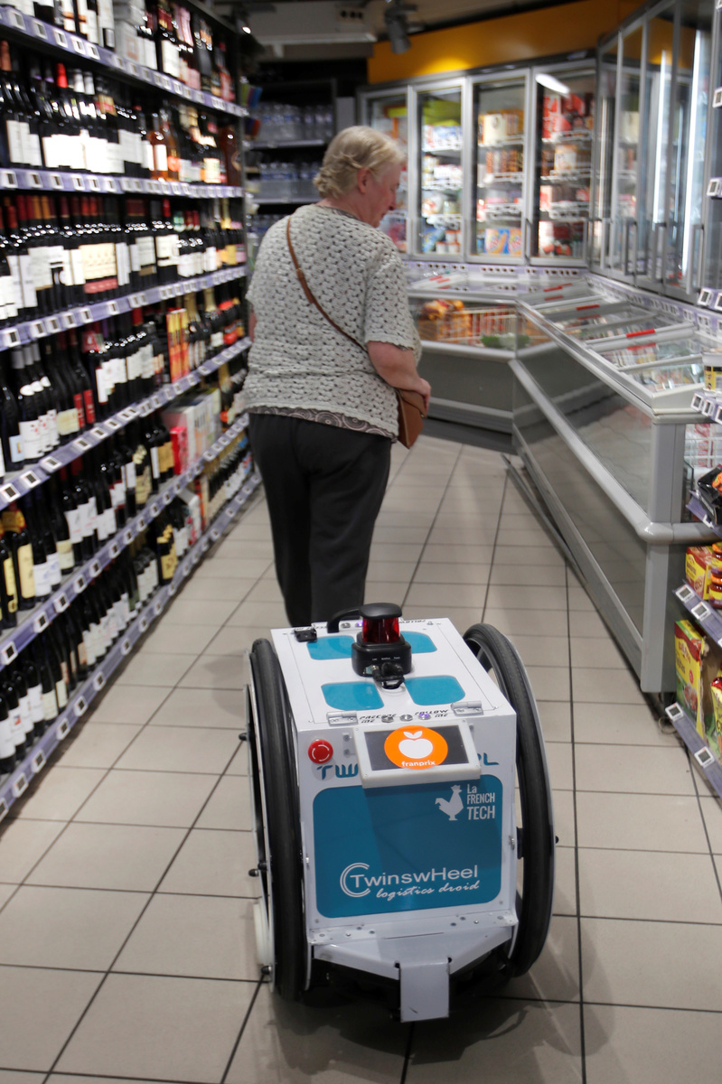 In the initial trial, Franprix will use the robot in store to carry purchases for customers - mainly people with reduced mobility or the elderly - and take the goods to their homes.
