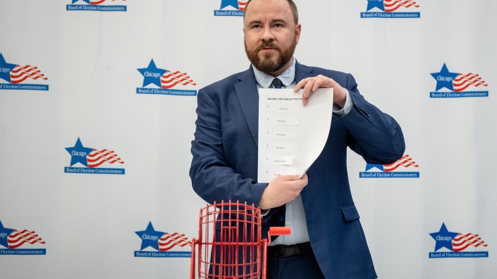 On Tuesday, the Chicago Board of Elections held a lottery to determine ballot position from among the six mayoral candidates who filed their nominating petitions at 9 a.m. on Nov. 21, the first day of the weeklong filing period.