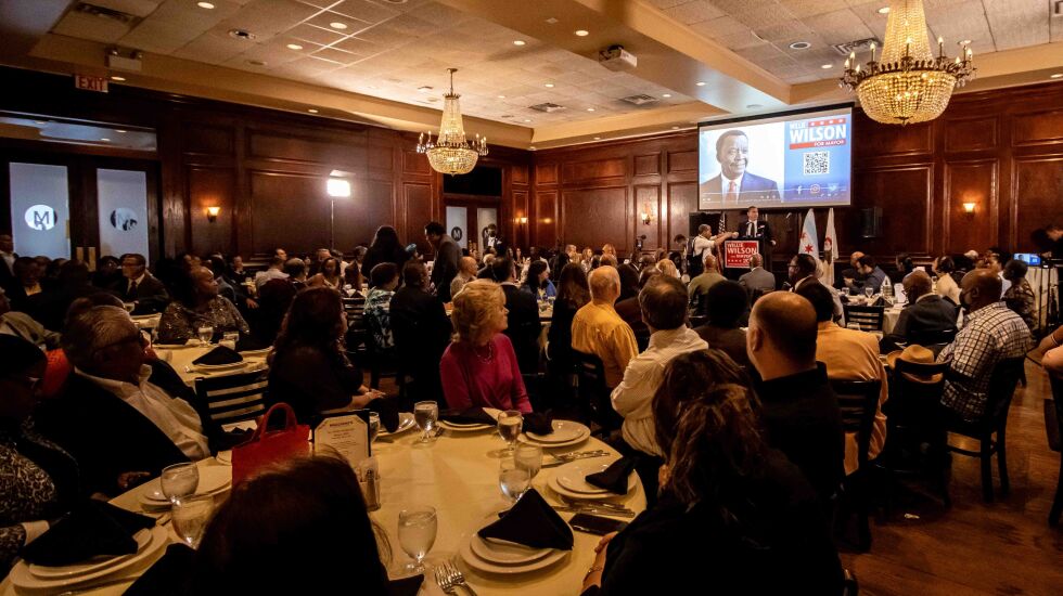 In a speech at a fundraiser for his campaign, held in a River North banquet hall filled with supporters, Wilson outlined a laundry list of costly proposals aimed at confronting the one problem — violent crime — that public opinion polls show is foremost on the minds of Chicago residents, employees and visitors.