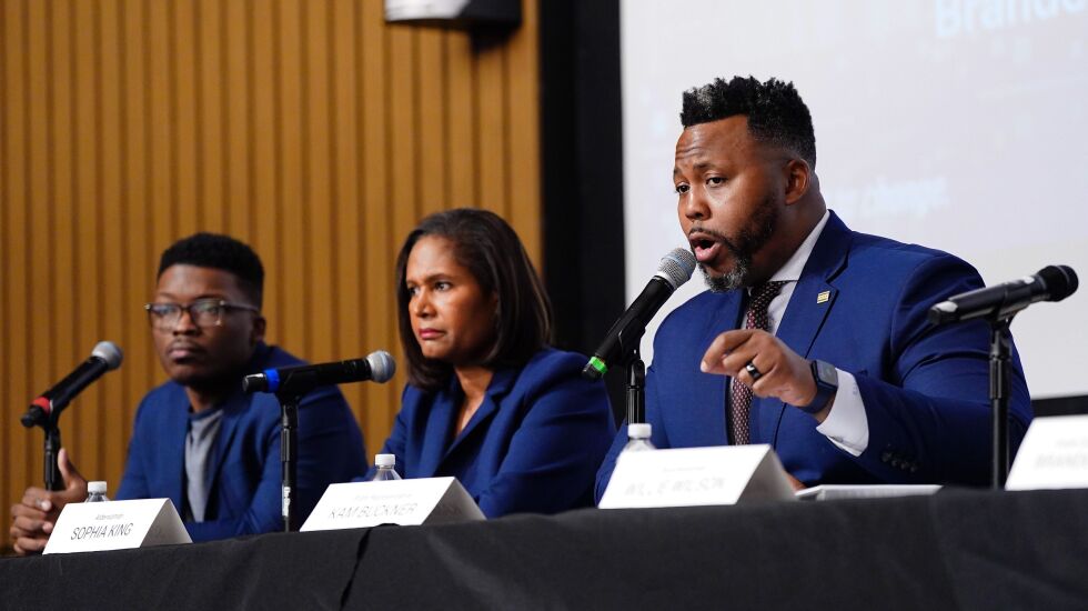 State Rep. Kam Buckner, community activist Ja’Mal Green, Cook County Commissioner Brandon Johnson, Ald. Sophia King (4th) and former Chicago Public Schools CEO Paul Vallas all slammed the City Council subcommittee on reparations.
