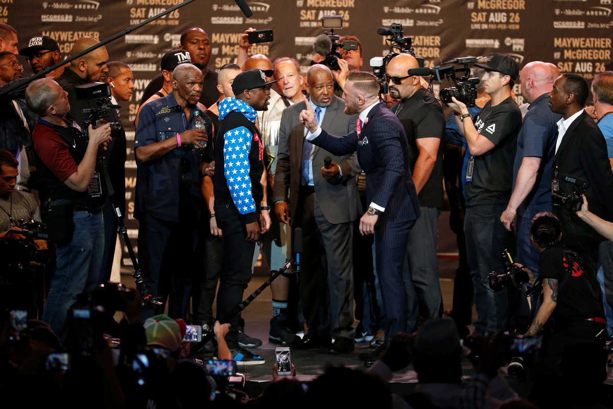 As is expected in the bout, McGregor was the aggressor, wasting no time bringing up reports that Mayweather earlier this month asked the IRS for more time to pay his 2015 tax bill.