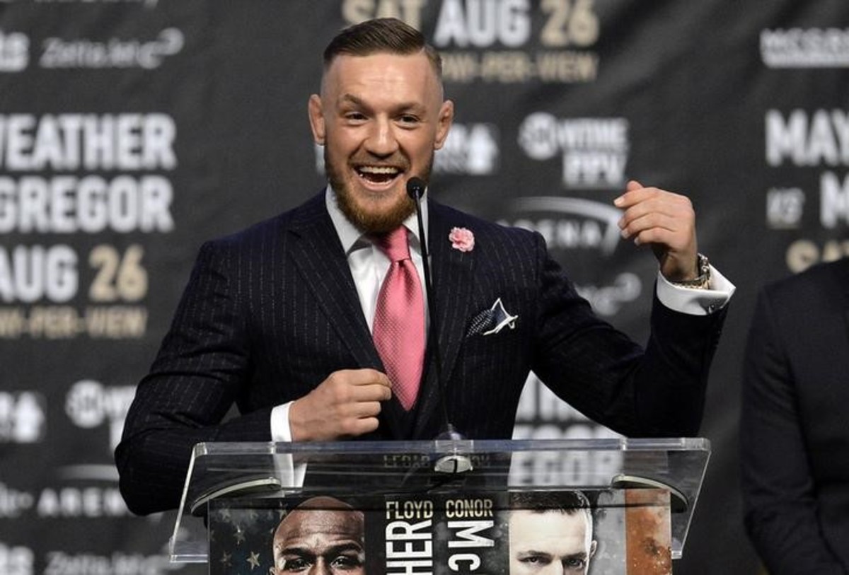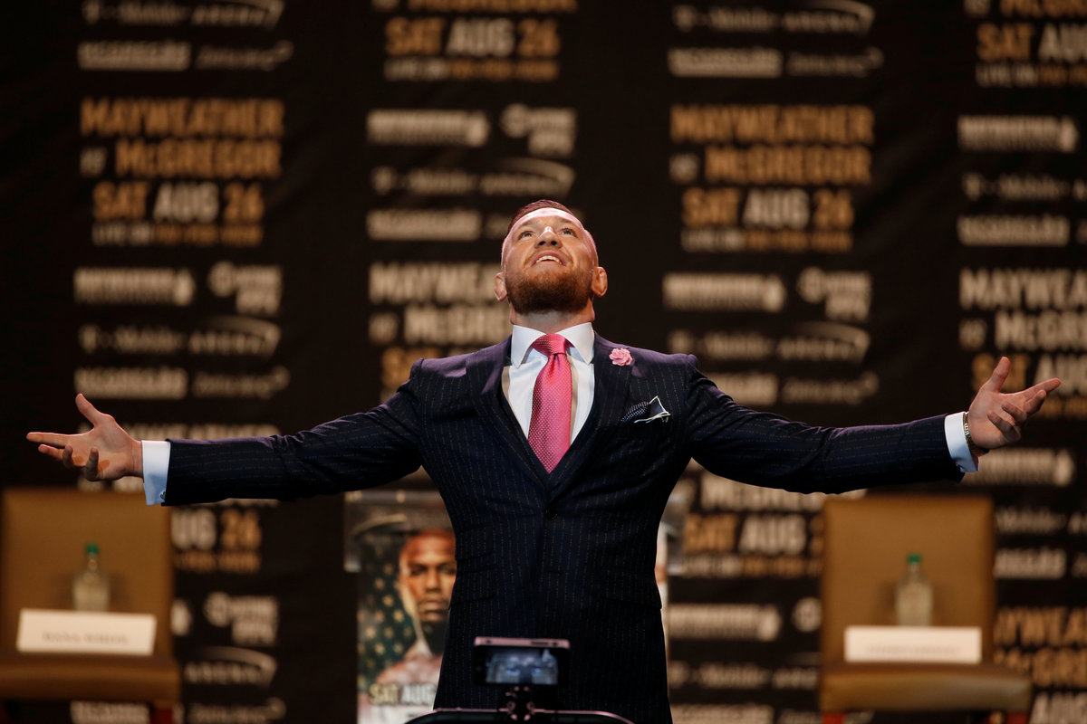 "He's in a track suit," McGregor told the crowd of more than 11,000 people, who largely cheered the Irishman and booed the American. "He can't even afford a suit anymore."