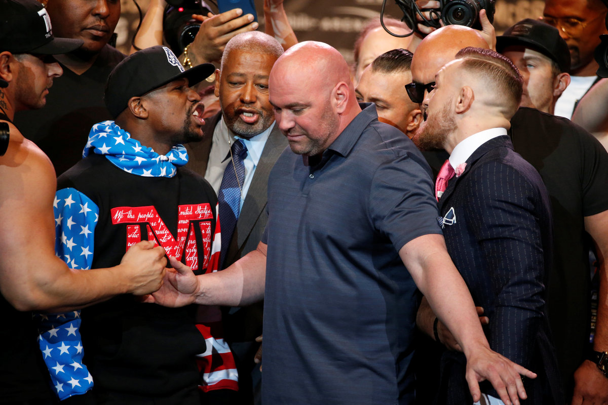 LOS ANGELES (Reuters) - Undefeated boxer Floyd Mayweather and mixed martial arts champion Conor McGregor traded barbs during a lively press conference in Los Angeles on Tuesday, delighting a rowdy crowd ahead of their Aug. 26 fight in Las Vegas.