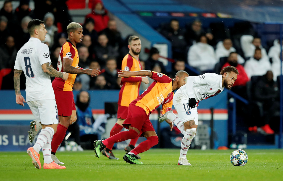 PARIS (Reuters) - Kylian Mbappe and Neymar were at their brilliant best as Paris St Germain demolished Galatasaray 5-0 in their final Champions League Group A game at the Parc des Princes on Wednesday.