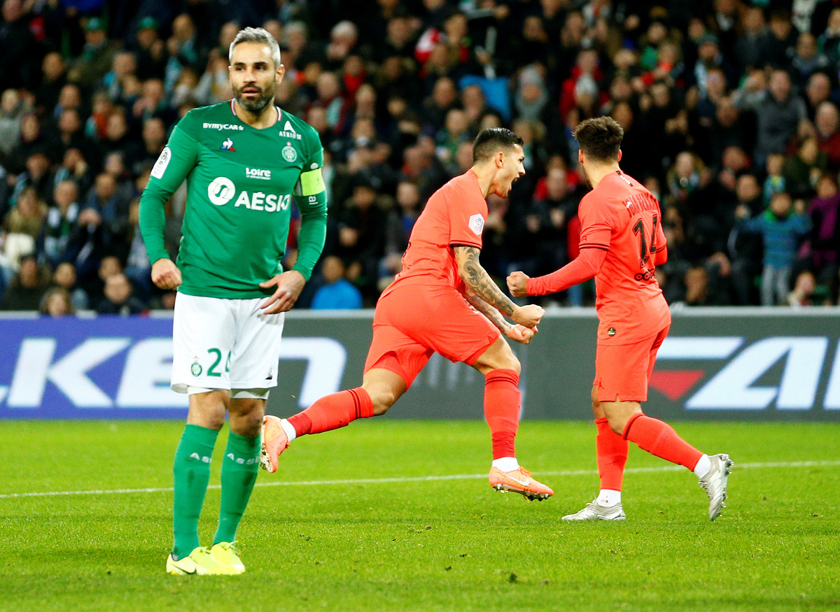 Soccer Football - Ligue 1 - AS Saint-Etienne v Paris St Germain - Stade Geoffroy-Guichard, Saint-Etienne, France - December 15, 2019 Paris St Germain's Leandro Paredes celebrates scoring their first goal REUTERS/Emmanuel Foudrot