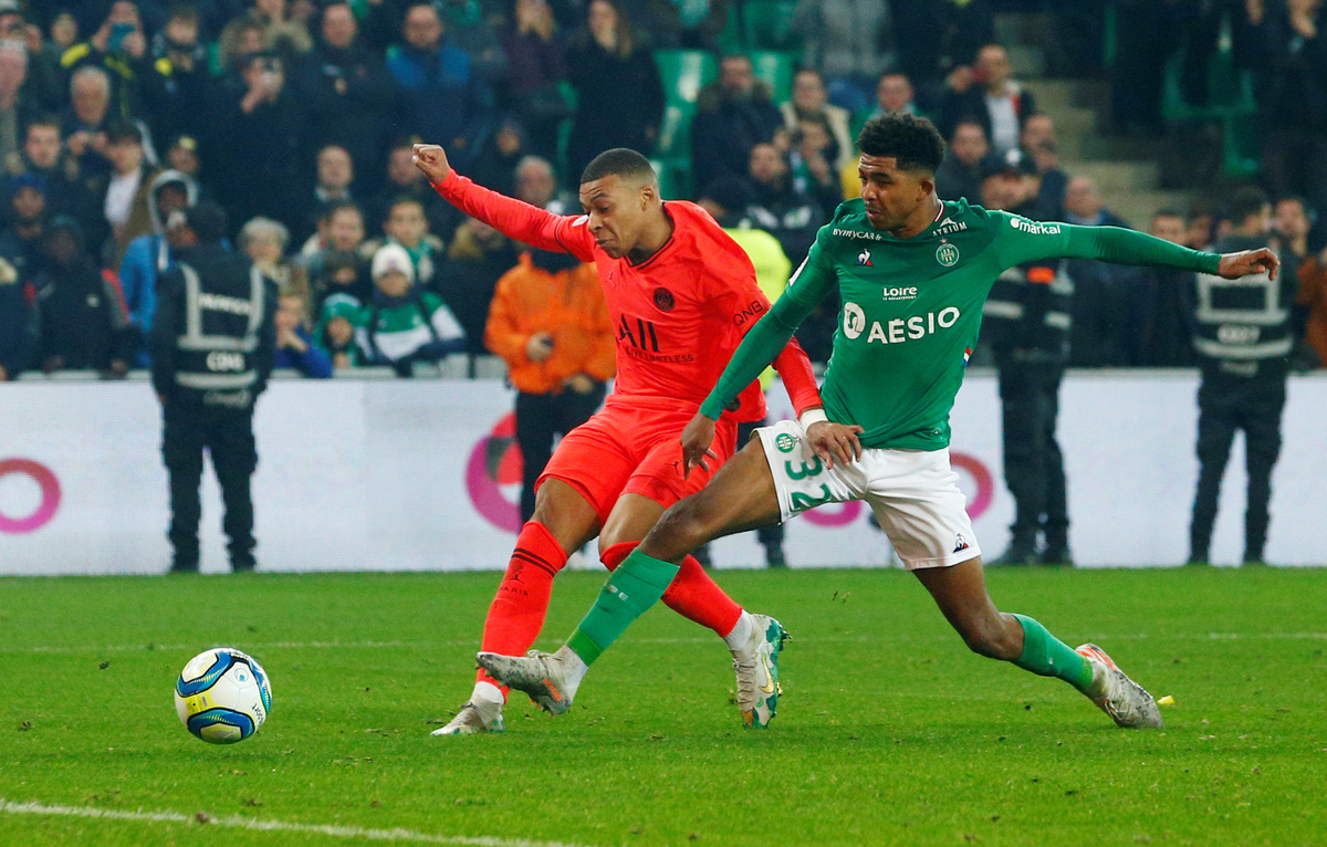 Soccer Football - Ligue 1 - AS Saint-Etienne v Paris St Germain - Stade Geoffroy-Guichard, Saint-Etienne, France - December 15, 2019 Paris St Germain's Kylian Mbappe scores their fourth goal REUTERS/Emmanuel Foudrot