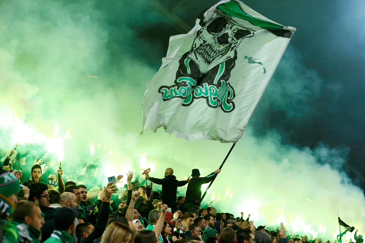 Les Verts went down to 10 men when Aholu was shown a straight red card for a dangerous tackle on Paredes.