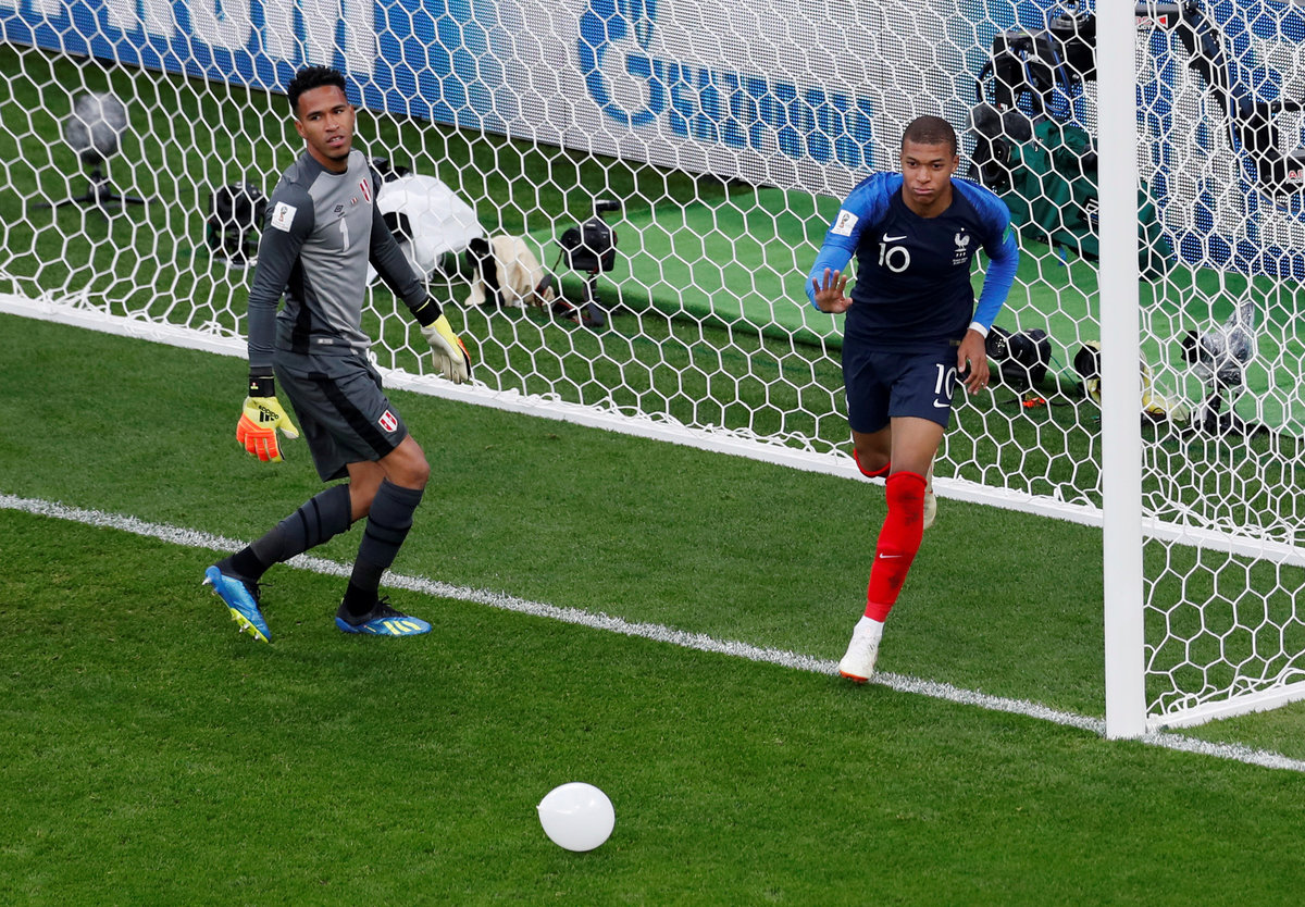 Having survived a nervous opening 10 minutes, France looked as though they might dominate the match, with Antoine Griezmann darting at Peru's defence, Mbappe showing off his tricks and flicks, and full backs Benjamin Pavard and Lucas Hernandez pressing forward on the wings.