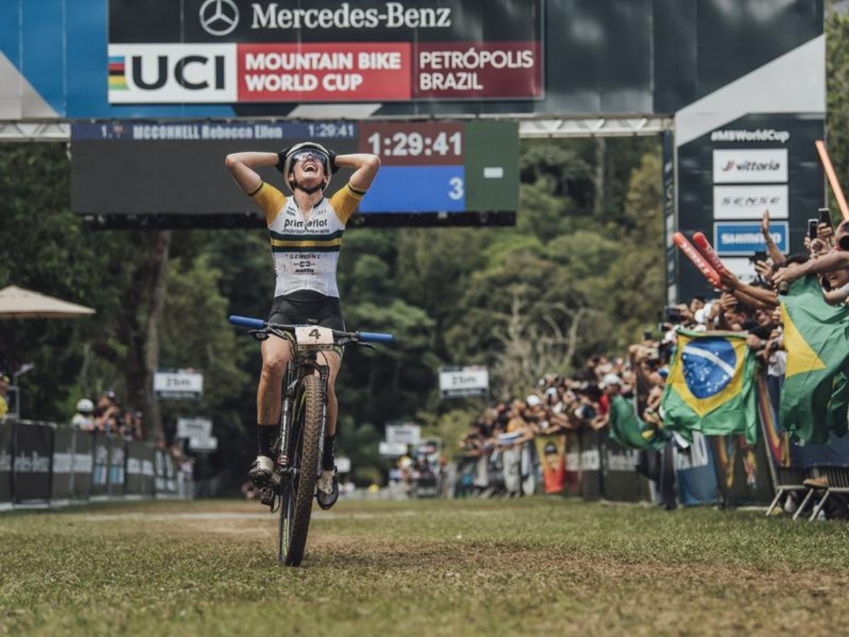 Top Australian mountain biker Rebecca McConnell has broken through for her first World Cup win, taking out the opening round in Brazil.