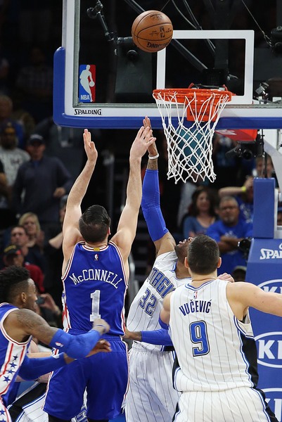 Then Ilyasova had a corner three blocked by Vucevic. After bouncing on the court, the ball hit off the backboard and out of bounds. Officials ruled a jump ball for Ilyasova and Evan Fournier. McConnell got the ball before providing his game-ending heroics.