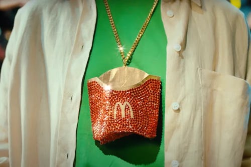 Ranging from french fry box earrings to a Big Mac box ring to crushed drink pendants, the collection offers 14-karat gold and gold-plated pieces. It’s a six-piece collection to be exact, dipping sauce not included. Dutch family business De Vaal produced the jewelry, adding expertise from its six generations’ worth of jeweler experience.