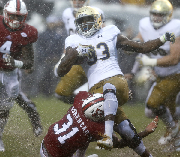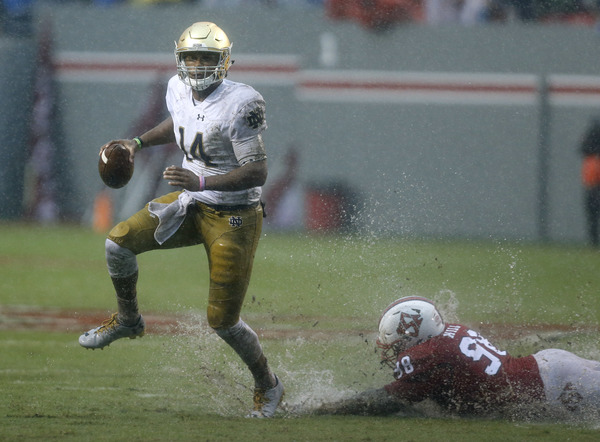 The Wolfpack actually moved the ball, with relative ease, on its opening drive. Dayes and Jaylen Samuels had success on the ground and got the offense down to the Notre Dame 8-yard line.