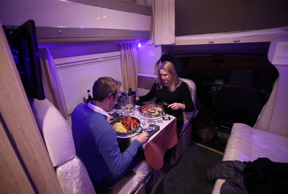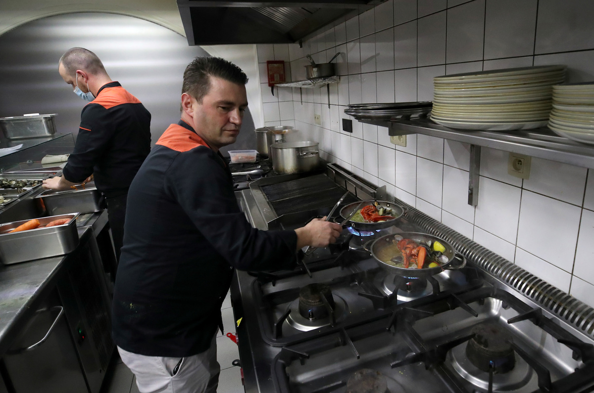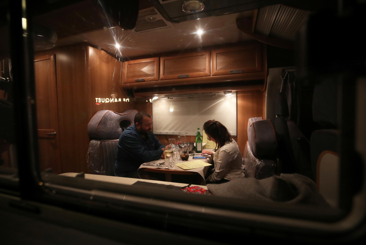 A Belgian restaurant has found a way to keep orders rolling in during lockdown - by serving its seafood to customers in camper vans.