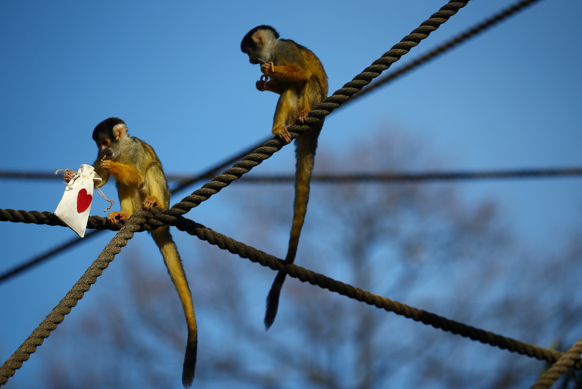 Mealworm Valentine treats charm London Zoo's squirrel monkeys